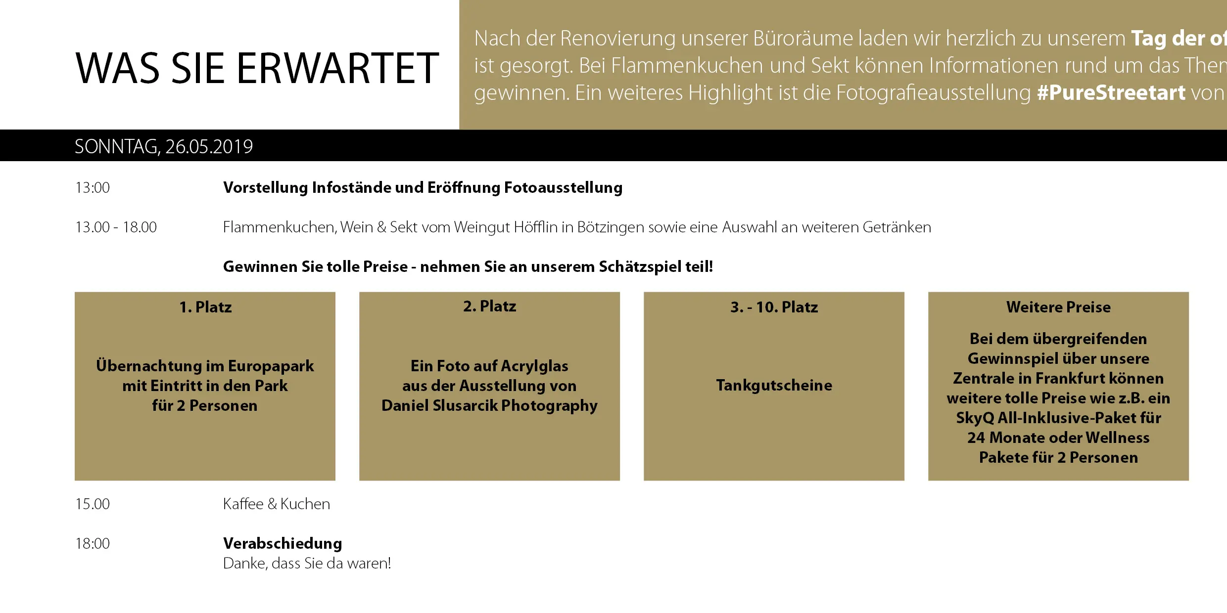 Herzlichen Glückwunsch zum neuen Büro. Am 26. Mai 2019 war es dann endlich soweit und nach dem Umbau des gesamten Bürogebäudes – konnten die neuen Räumlichkeiten besucht werden. Zusätzlich gab es noch einen Flammkuchenstand sowie leckere Weine vom Weingut Höfling aus Bötzingen.