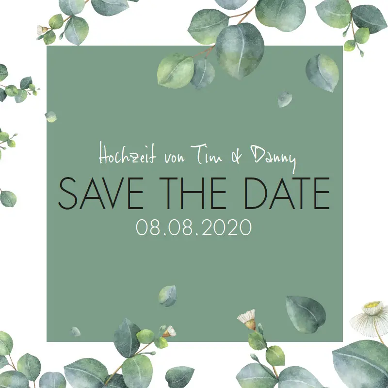 Diese Hochzeit stand ganz im Zeichen vom Eukalyptus. Die Einladungskarten – wie auch die weiteren Elemente wurden alle im ähnlichen Stil gestaltet. Im Vordergrund stand immer der Eukalyptus und der Text wurde farblich angepasst. Von der ersten Einladung bis hin zum Willkommensschild – alles als eine Serie gestaltet. Die Gäste sind somit überall mit dem Thema in Berührung gekommen. Selbst die Menükarten (gedruckt auf transparentem Papier) waren am Platz und konnten somit das Gefühl der Einheitlichkeit vermitteln. Die Tischdekoration wurde schlicht gehalten – als Blumendekoration wurden hier Eukalyptus Blätter bzw. Pflanzen genutzt.