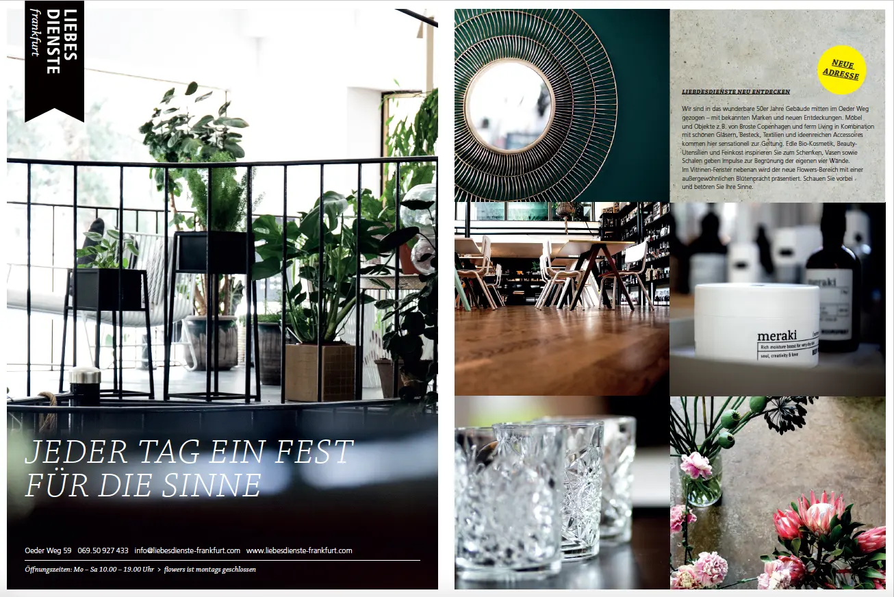 #FrankfurtWirdSchöner Liebesdienste Frankfurt – Urbaner im Kiez. Der Conceptstore steht für lässigen Scandinavian-Style, außergewöhnliche Kosmetik-Produkte, fantasievolle Blumenkreationen und saisonale Delikatessen. Daniel Slusarcik Photography kümmert sich seit mittlerweile über 5 Jahren um die fotografische Darstellung des Stores und sorgt damit um eine optimale Außenwerbung. – Urbaner