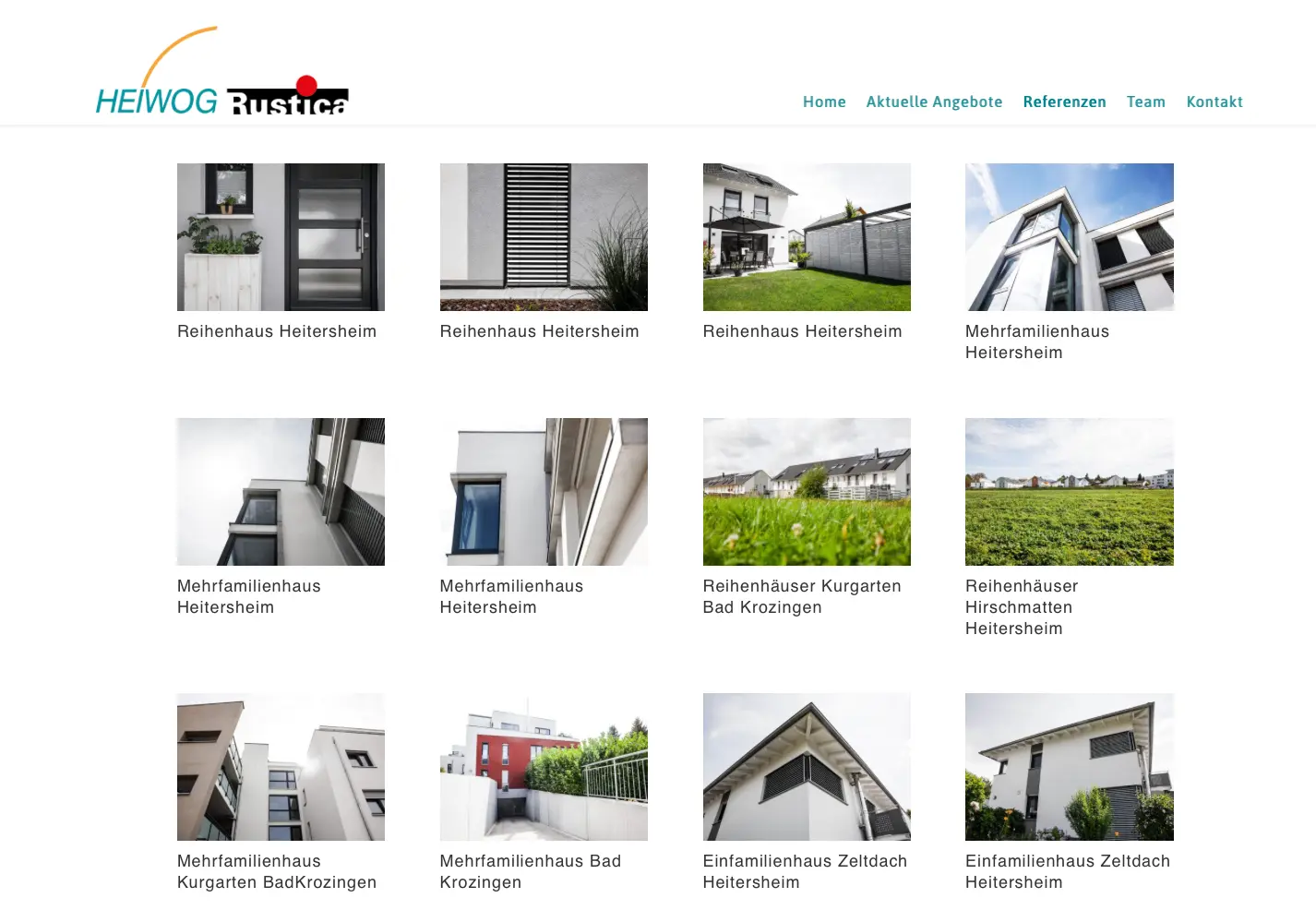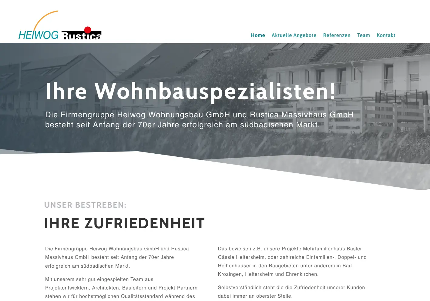 Die Firmengruppe Heiwog Wohnungsbau GmbH und Rustica Massivhaus GmbH besteht seit Anfang der 70er Jahre erfolgreich am südbadischen Markt. Mit dem Wunsch beide Unternehmen unter einem gemeinsamen Dach zu führen haben meine Partner und ich uns ein Marketingkonzept überlegt, welches eine neue Webseite, Flyervorlagen, Visitenkarten sowie eine Unternehmensbroschüre beinhaltet. Selbstverständlich wurde hier sehr viel Wert auf Individualität und Qualität gesetzt. Die Fotos, die nun überall benutzt wurden ebenfalls im Rahmen der Neukonzeption erstellt und passen sich dem Gesamtbild wunderbar an.