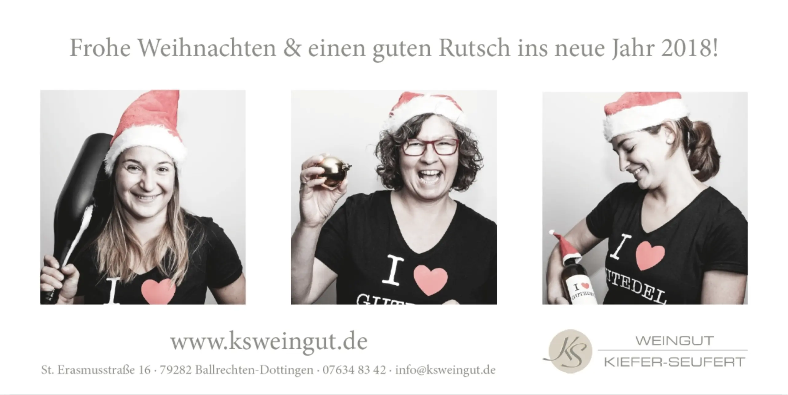 Das Weingut Kiefer-Seufert in Ballrechten-Dottingen – jung, dynamisch und besonders! Wie jedes Jahr – gab es auch in 2018 eine neue Weihnachtskarte, die über ein Postmailing an die Kunden verschickt wurde.